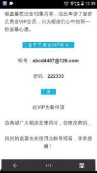 3. 免费获取:有些热心网友会在网络上分享一些VIP账号的密码,但这种方式风险较大,因为密码可能已经被泄露,或者只是临时账号。